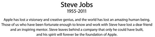 “苹果失去了一位充满想象力和创造力的天才,世界失去了一位令人惊叹的人物。有幸结识他、和他一起公事过的我们,失去了一位亲爱的朋友、一个启发灵感的良师益友。史蒂夫留下了一个只有他才能建造的公司,他的精神将永远是苹果的基石。”